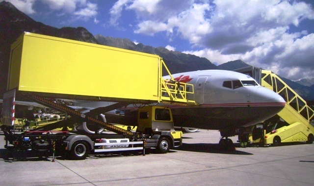 Mit diesem Fahrerhausumbau zum "Halbschnittfahrzeug" bietet die Firma Eller eine Problemlösung für den Catering− und Rollstuhltransport im Flugvorfeld an. Bei dieser Fahrerhausänderung bleibt der gesamte Funktionsumfang des Fahrgestells erhalten. |