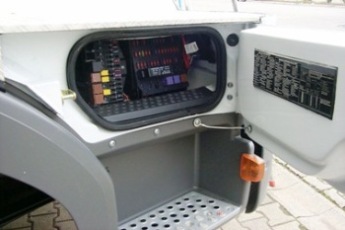 − | Fahrzeugelektronik leicht an Beifahrerseite über GFK−Türe zugänglich | |